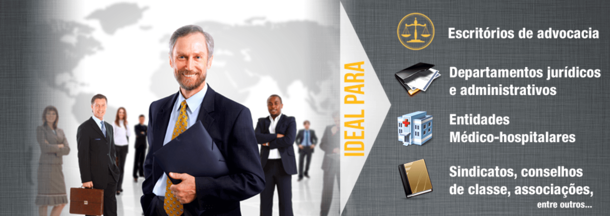 Ideal para escritórios de advocacia de todos os tamanhos e áreas de atuação, departamentos jurídicos em geral, escritórios de contabilidade, órgãos ou entidades de classe (conselhos profissionais, sindicatos, associações), órgãos públicos, clínicas médicas, hospitais, dentre outros.